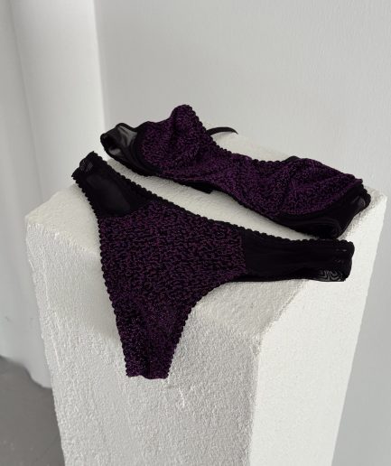 Kadın Siyah Mor Nokta Detaylı İç Giyim Takımı