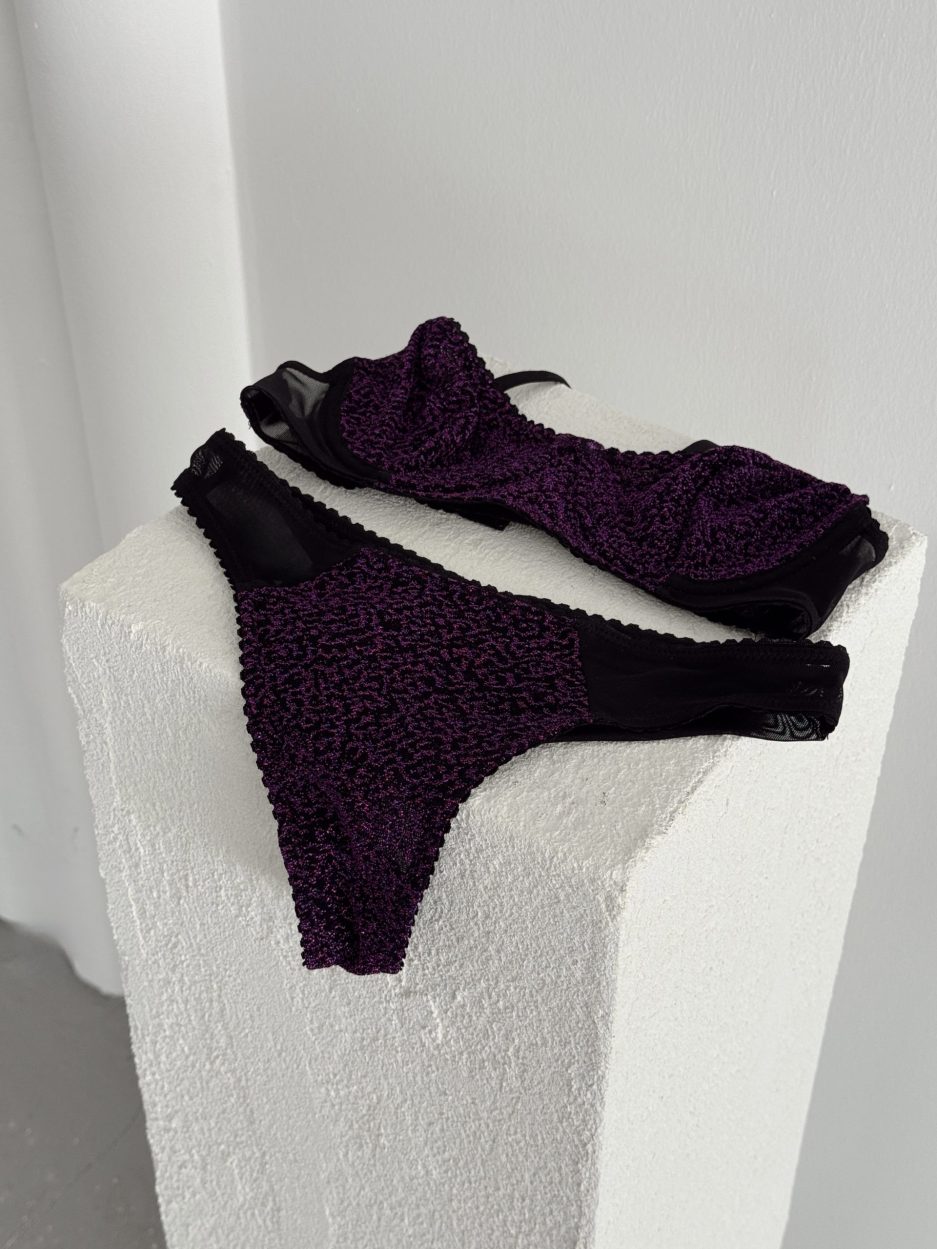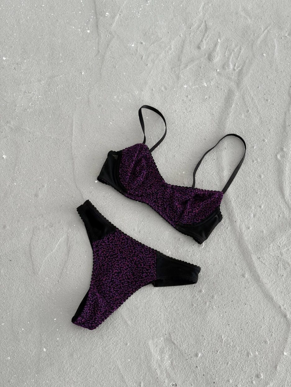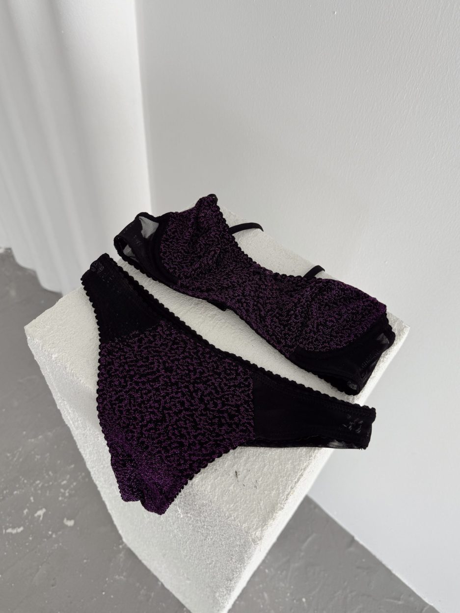 Kadın Siyah Mor Nokta Detaylı İç Giyim Takımı