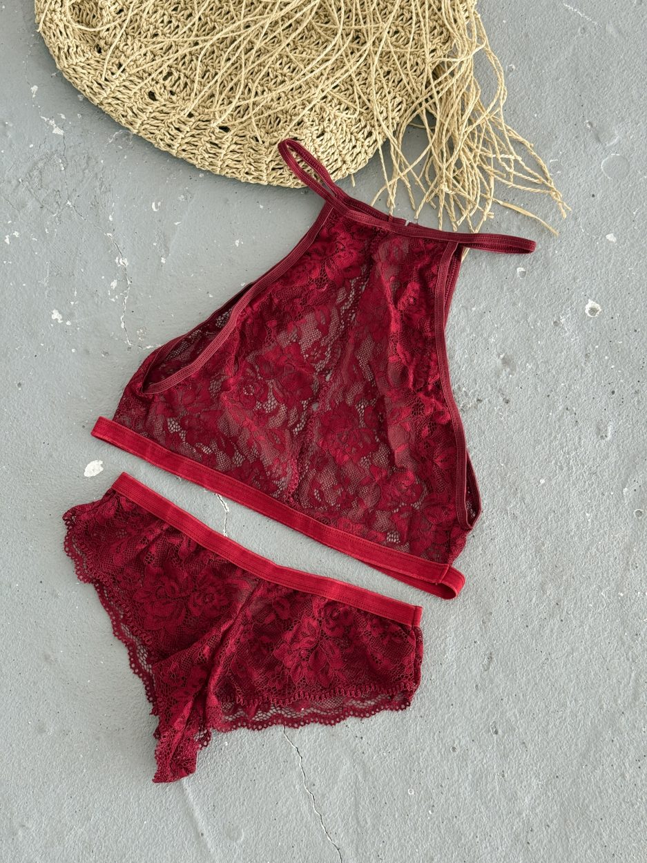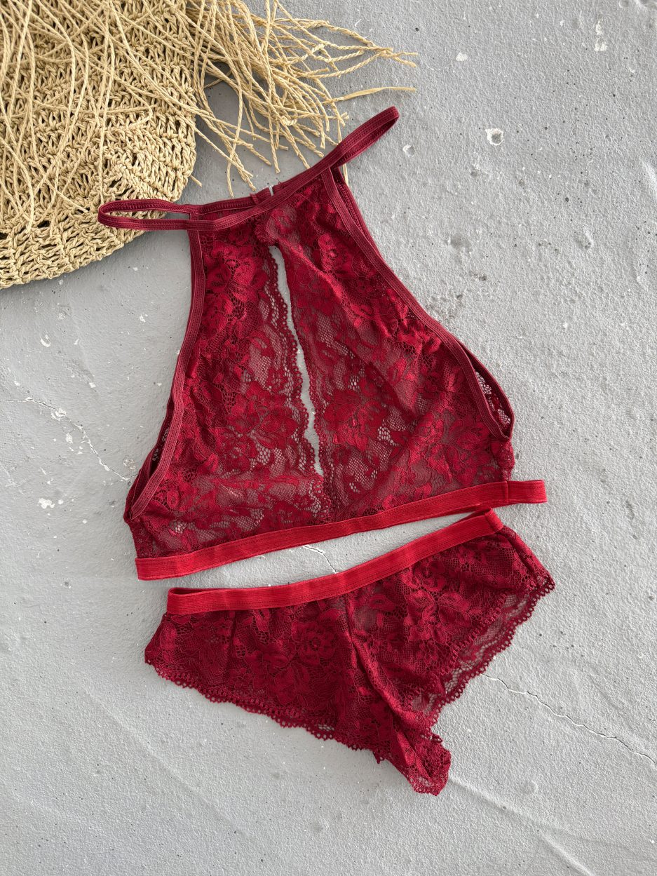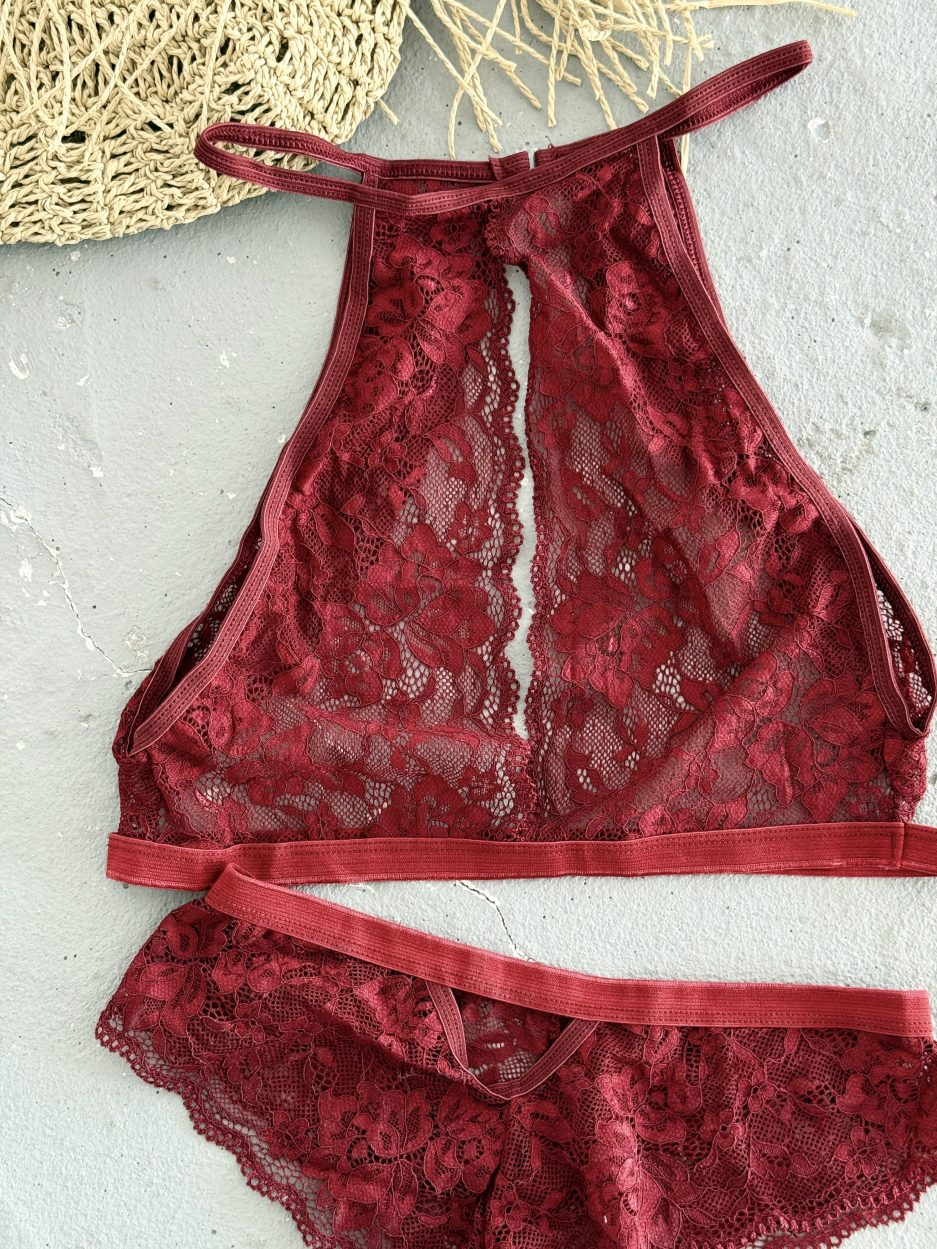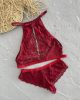 Kadın Bordo Dekolteli Çamaşır Takımı