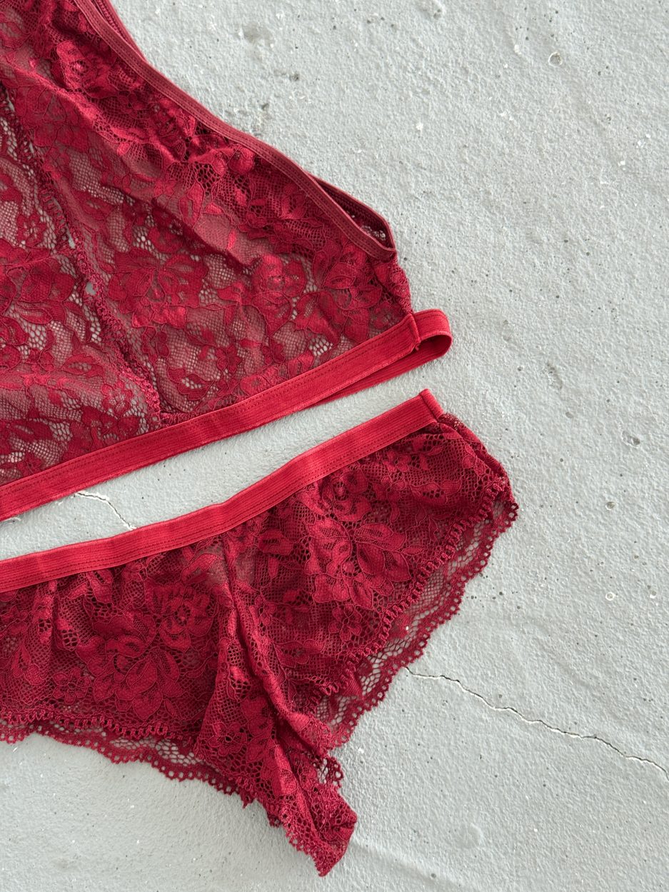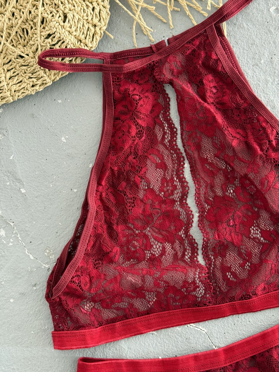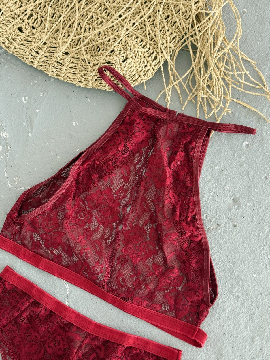 Kadın Bordo Dekolteli Çamaşır Takımı